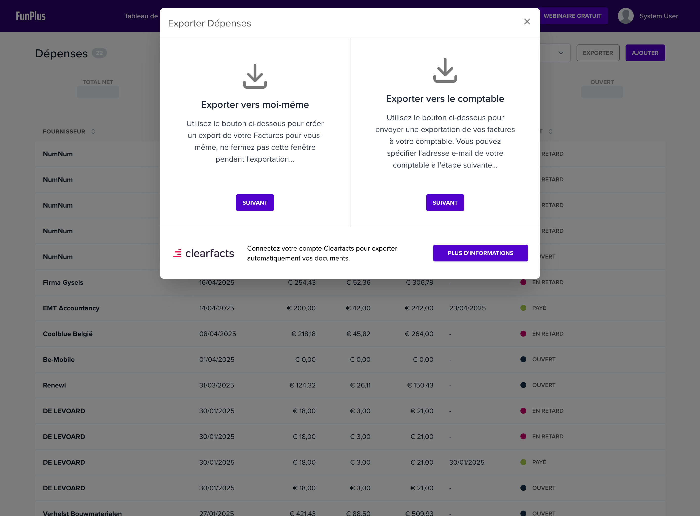| 4 | Dépenses | Exporter vers le comptable |