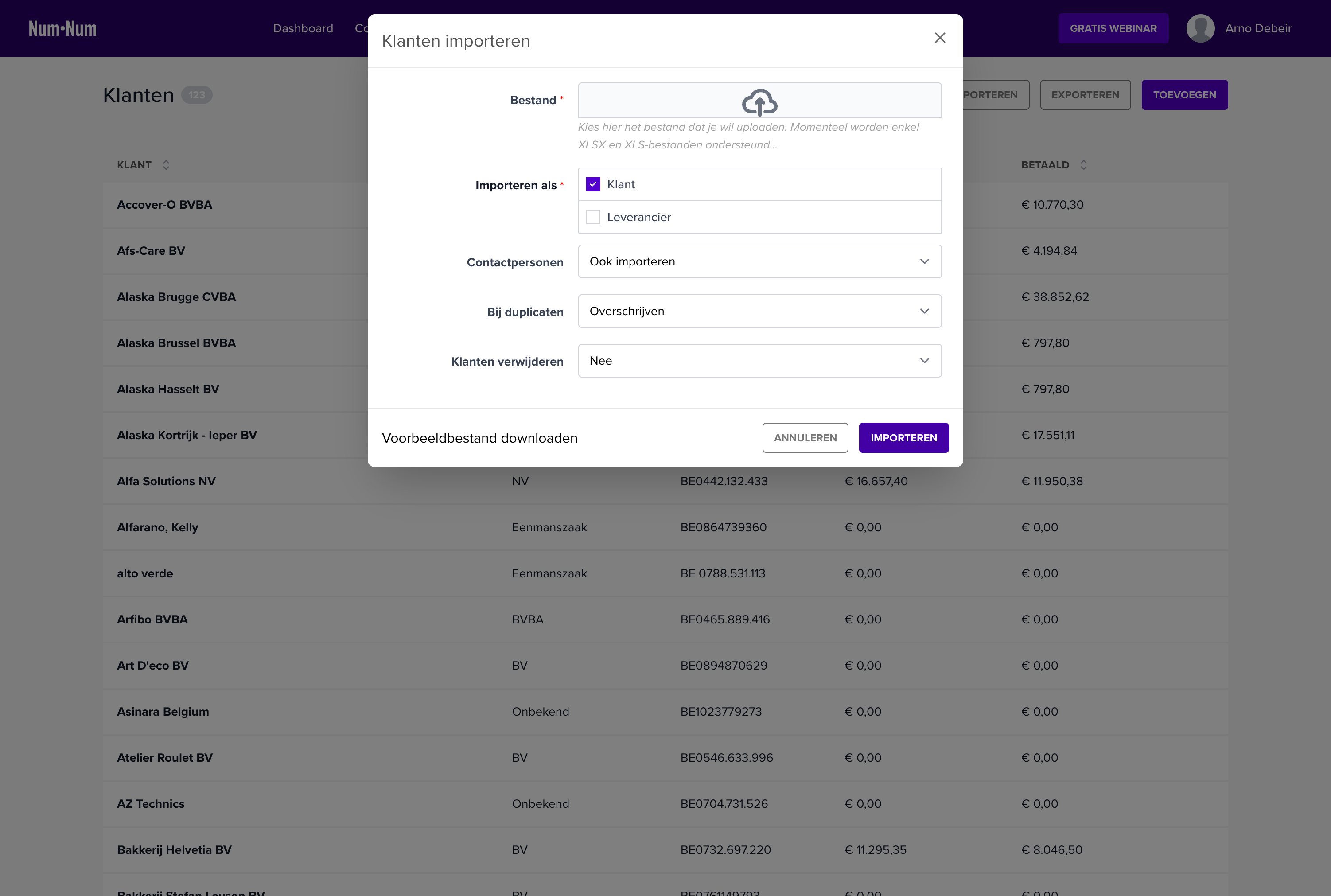 Er opent een dialoogvenster “Klanten importeren”: